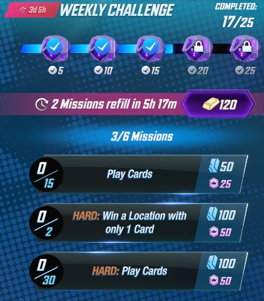 컬렉션 레벨을 진행하기 위한 가장 중요한 조언입니다. 크레딧을 얻는 가장 일관된 방법은 일일 및 주간 미션을 모두 수행하는 것이므로 게임을 너무 많이 하지 않는 경우 최소한 수행해야 합니다.