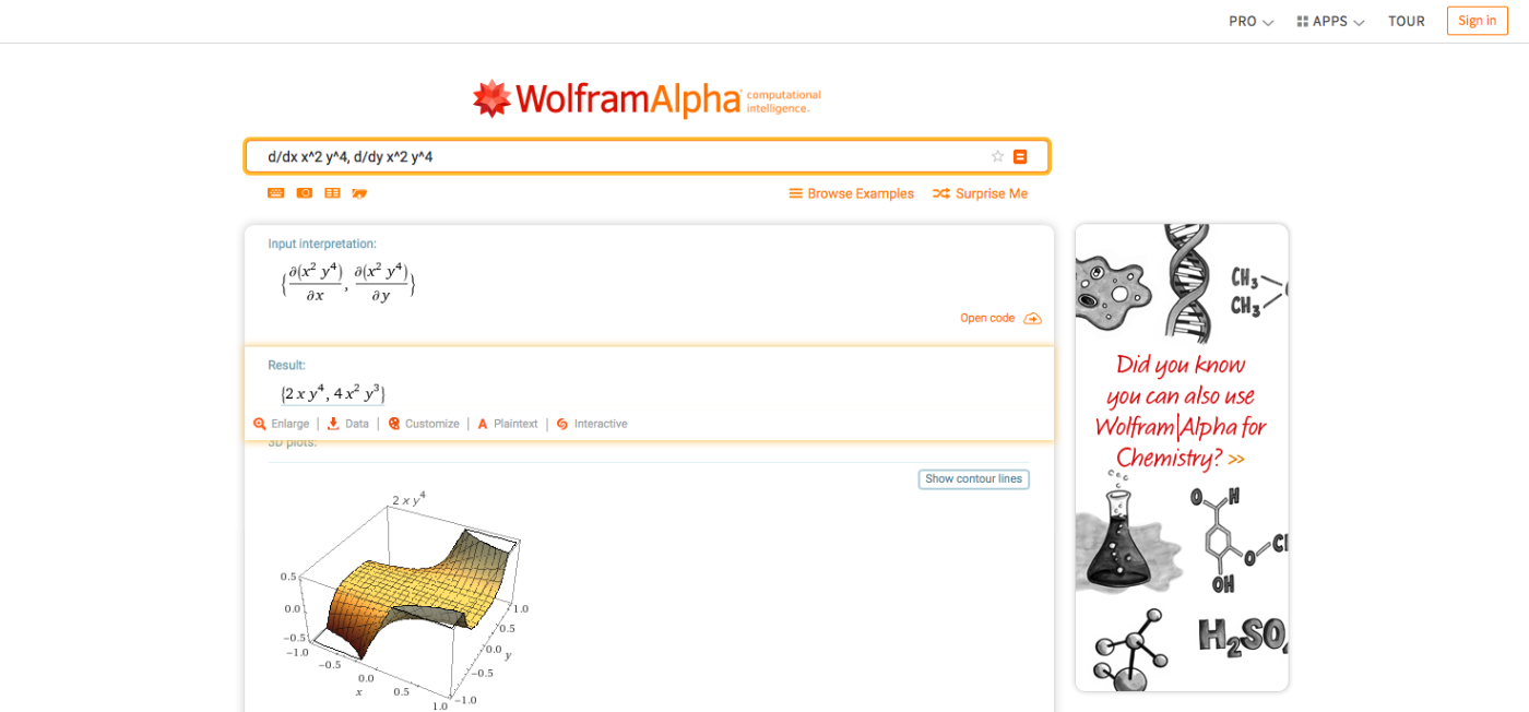 커피 4잔에 들어 있는 카페인의 양이나 백상아리 23마리의 무게를 알아야 합니까? 아니면 더 실질적으로 4개의 다른 도시의 현재 시간, 소수의 통화로 된 항목의 총 비용 또는 미적분 숙제 문제에 대한 솔루션입니까? WolframAlpha의 사실 데이터베이스와 계산 도구는 이에 적합합니다. 여러 항목이 있는 문제 또는 솔루션을 얻고 처음에 문제를 해결하는 방법을 확인하려는 수학에 특히 유용합니다.