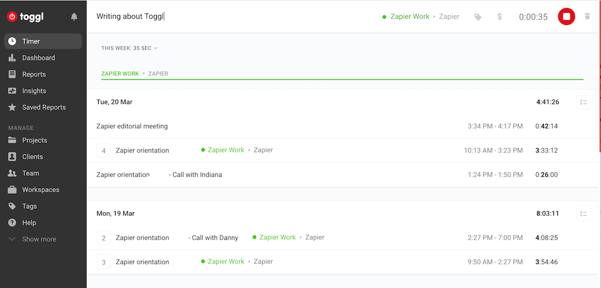 기록하는 시간에 대한 세부 정보가 있는 타이머로 편리합니다. 그런 다음 가장 세부적인 사항과 생산성을 유지하기 위해 Toggl은 유휴 시간을 모니터링하여 작업 중일 때만 추적할 수 있습니다. 또한 타이머 가 포함되어 있어 한 번에 25분 동안 일한 후에는 휴식을 취하여 지치지 않도록 합니다.
