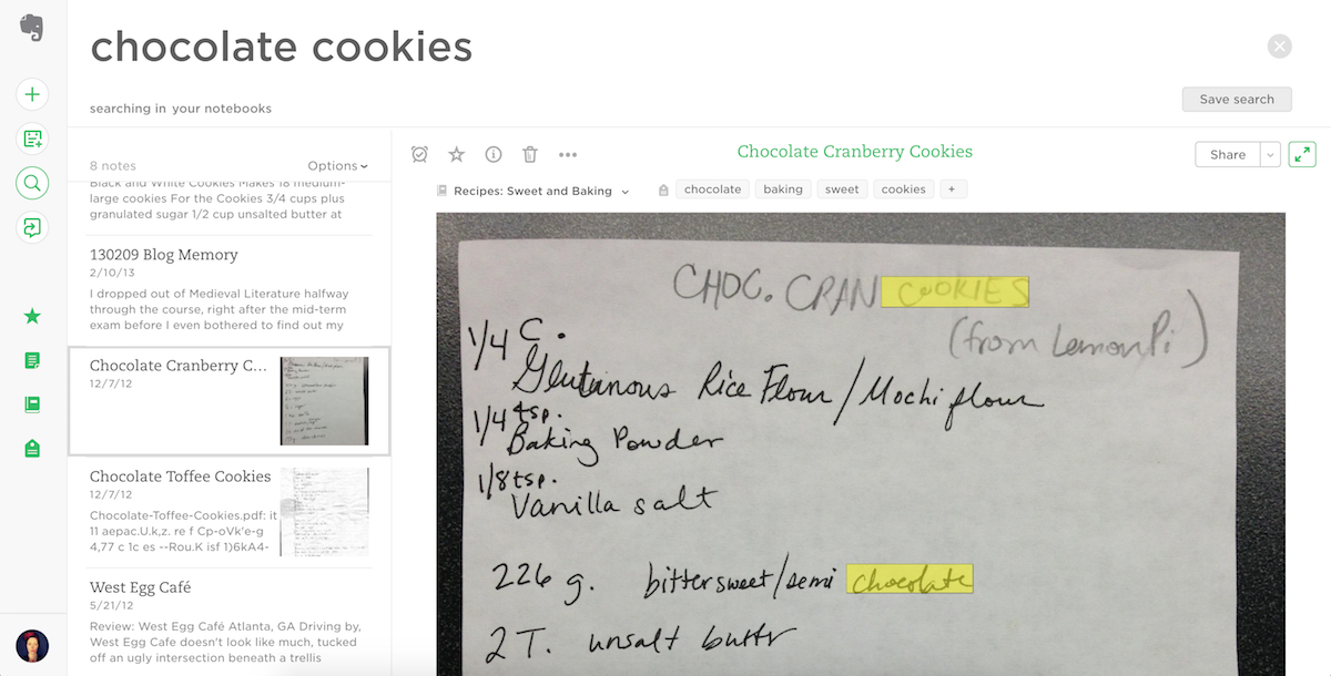 저장하고 싶은 것을 온라인에서 찾으셨습니까? Evernote Web Clipper는 기사, 조리법, 노트북에 대한 온라인 참조를 스크랩할 수 있습니다. 또는 Evernote의 모바일 앱의 카메라 도구를 사용하여 명함에서 데이터를 가져오고, 종이 포스트잇을 디지털 메모로 바꾸고, 메모의 위치에 태그를 지정하여 생각과 단계를 추적할 수 있습니다.