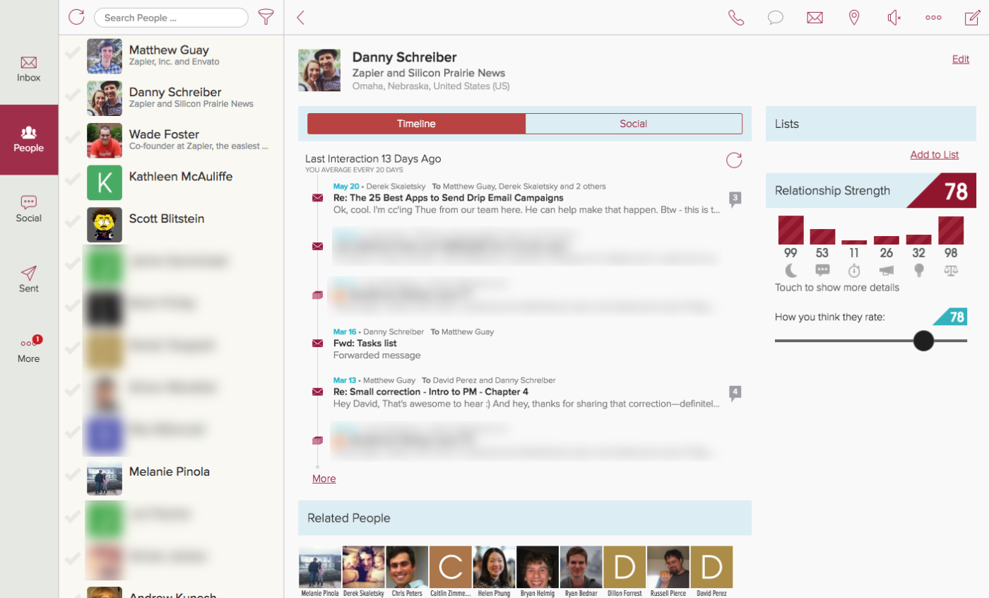 CRM과 마찬가지로 Cloze는 연결된 사람을 파악하고 연락처를 스마트하게 검색할 수 있도록 합니다. 당신이 지난주에 이야기했던 그 마케터의 이름이 기억나지 않습니까? 그들에 대한 세부 사항을 기억하는 한 Cloze 검색은 해당 정보를 찾을 수 있습니다. 또한 비즈니스 연결이 귀하를 잊지 않도록 잠시 동안 연락하지 않은 경우 다시 연락하도록 알려줍니다.